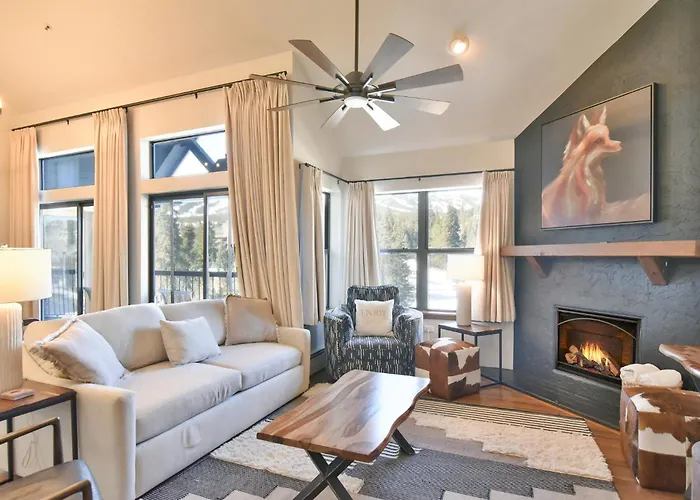 The 113 m² River Mountain Lodge Upper Flume : Ski-In, Hot Tub, Views Breckenridge is located in Breckenridge, nearly a 5-minute stroll from Sawmill Gulch, and boasts a Jacuzzi. The apartment is just a few steps from the BreckConnect Gondola and is situated in the Historic Downtown district.